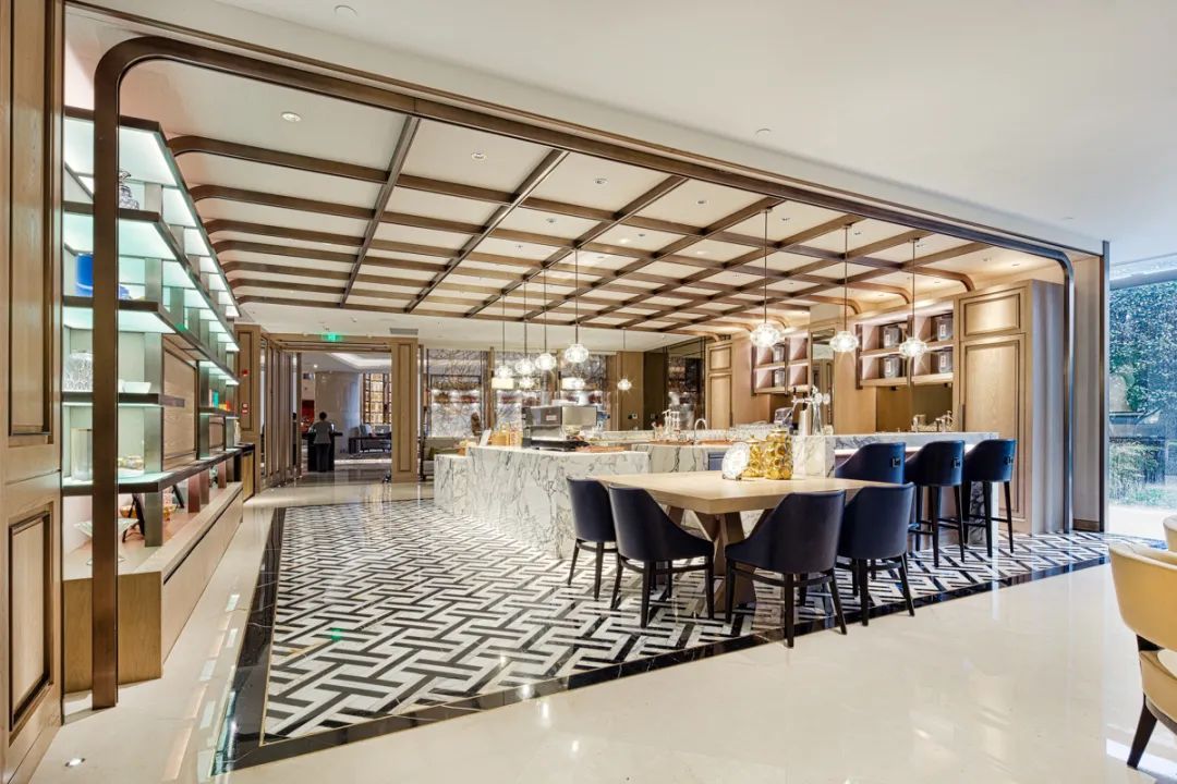 西湖国宾馆面积最大的核心建筑群是杭州G20期间翻新的8号楼,bf88必发负责8号楼大堂、餐厅等公共区域,包括酒店前台、知名餐厅「紫薇厅」、网红大堂吧「红吧」、自助餐厅改造升级。