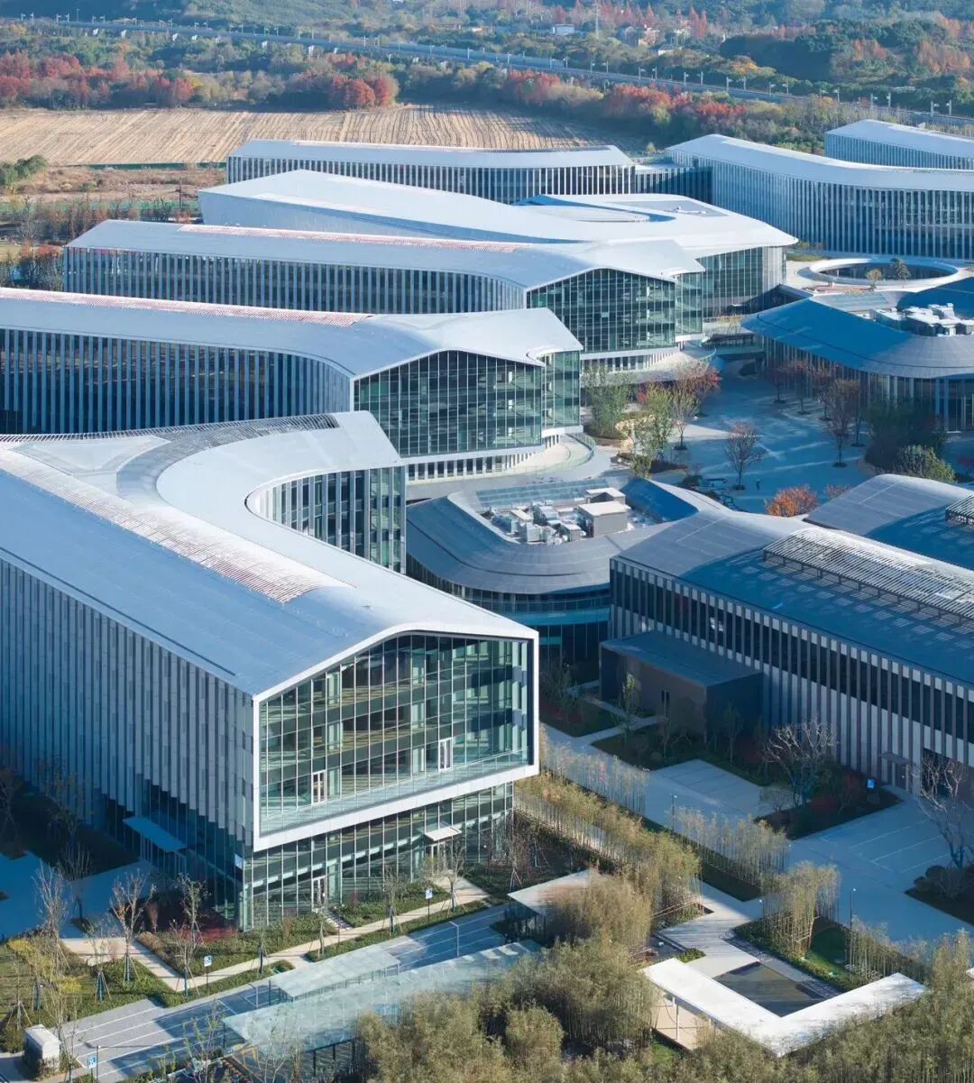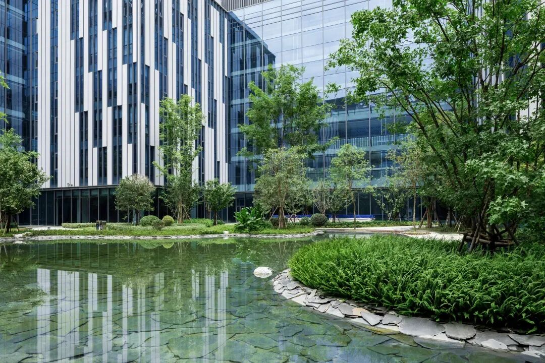 整个科技园的景观营造上,传承宋代山水画的意境,外揽山水之幽,内得人文之胜,望得见山、看得见水。