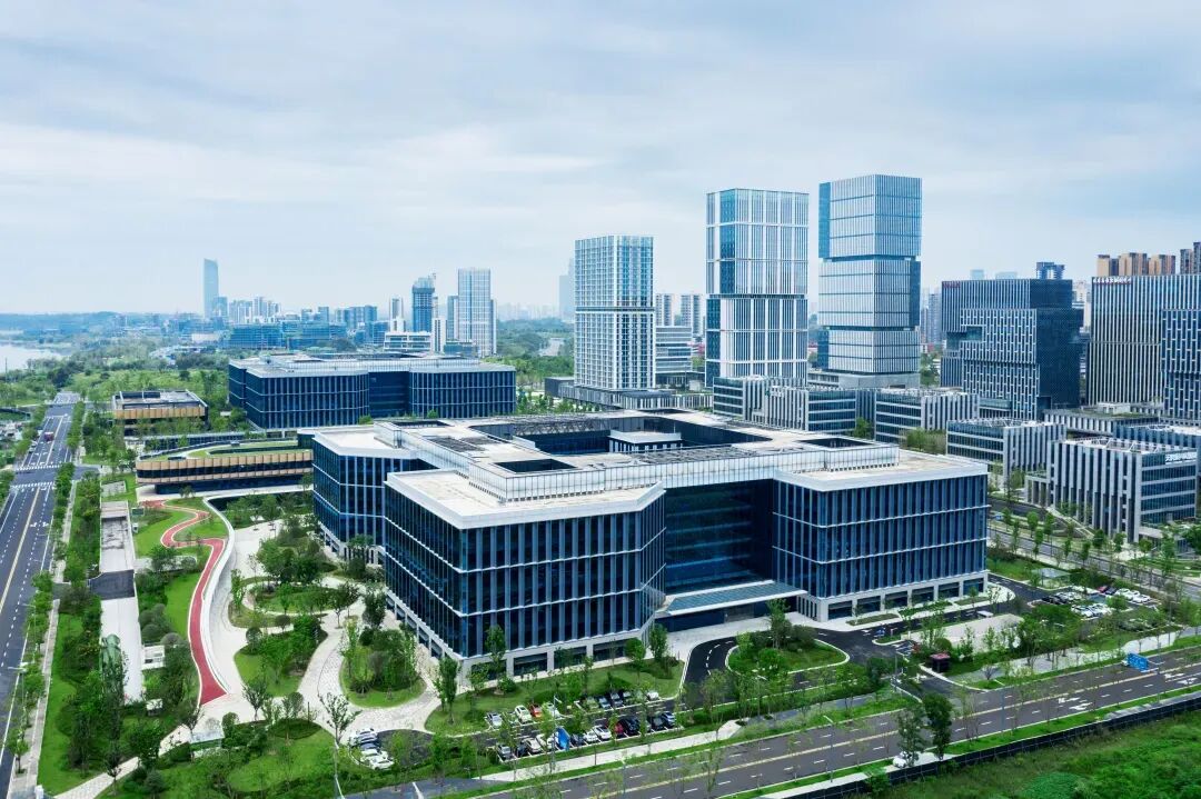 在成都兴隆湖畔以东、鹿溪河畔拐角,矗立着一座科技园区,是前不久刚开园的海康威视成都科技园,总建筑面积35万平方米,可同时满足超万人的研发办公需求,是海康威视单体占地面积最大的研发园区。