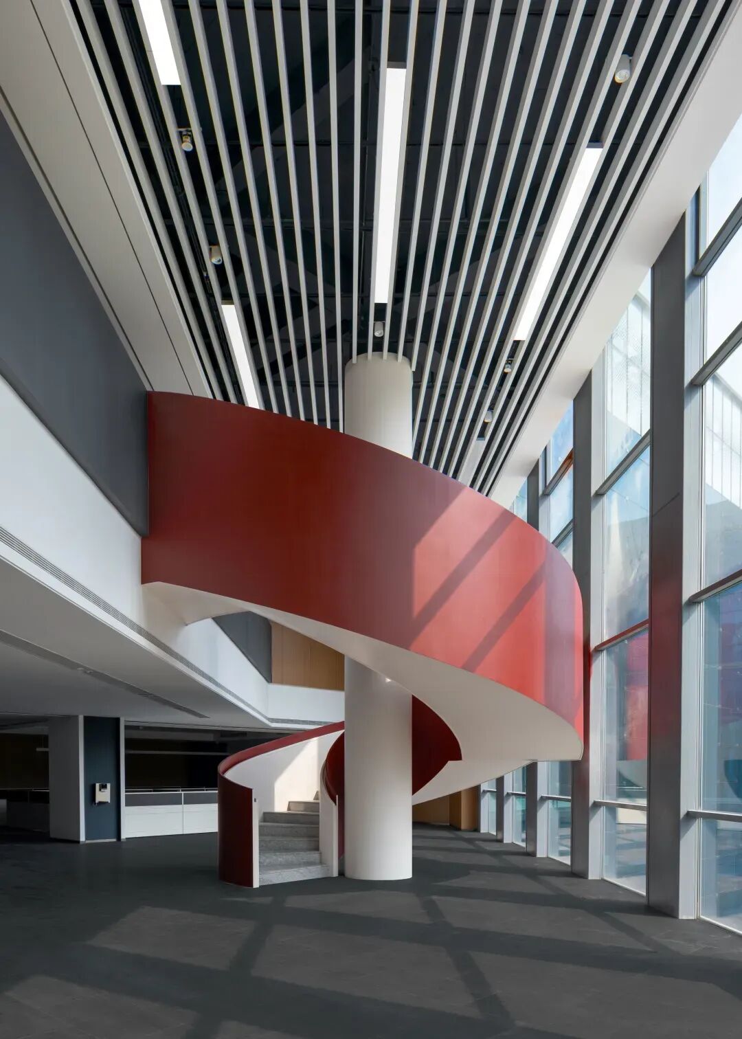 大小不一的窗洞经过不同的组合,凸显出建筑形如“二维码”的外立面效果,使得建筑在具备良好的通风采光性能的同时,又有丰富的立面肌理,突出了整个园区“科技+生态+人文”的区域特色。
